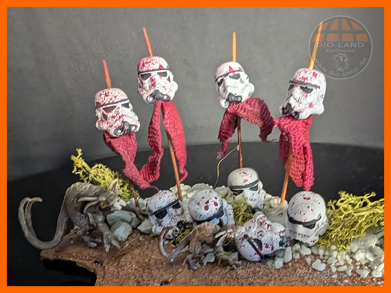 Diese Kleindioramen finden gerne einen Platz neben schon vorhandenen Figuren.